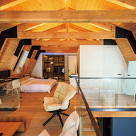 | 【西海岸リビング&インテリア!】Aフレームの山小屋建築をモダンにリノベーション! …いいオットマン付きソファは、ノエ・デュショフール=ローランスによる〈リーン・ロゼ〉。 庭に面した家主のベッドルーム。透明のガラス製クローゼットは自ら… (出典:Safari Online) |