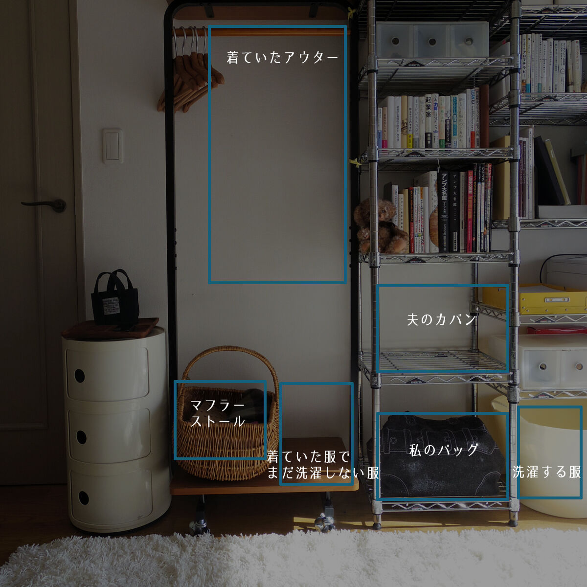 人(夫や子供)が置いたかばんは、