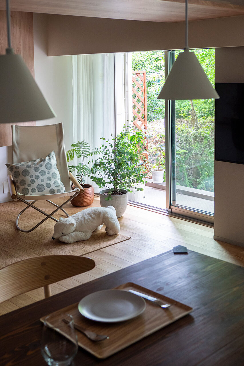 季節の移ろいを感じられる大きな窓からの眺めと、